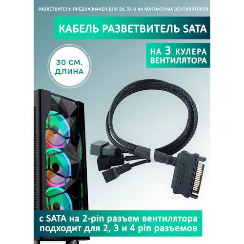 НАЙТИ ВЫГОДНЕЕ - Кабель переходник/разветвитель на 3 кулера/вентилятора с SATA. Удлинитель, 30см в оплетке