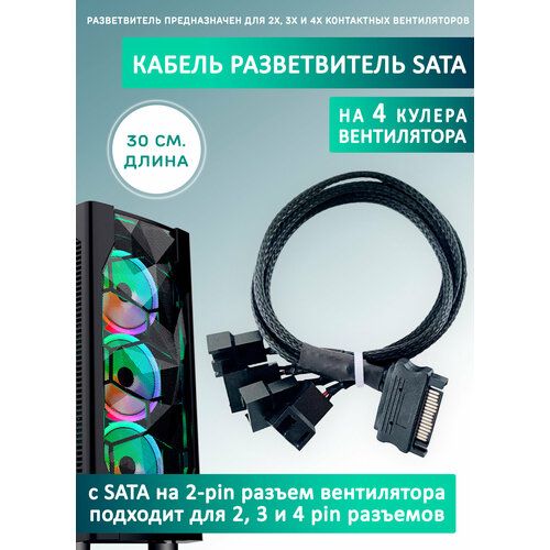 НАЙТИ ВЫГОДНЕЕ - Кабель переходник/разветвитель на 4 кулера/вентилятора с SATA. Удлинитель, 30см в оплетке