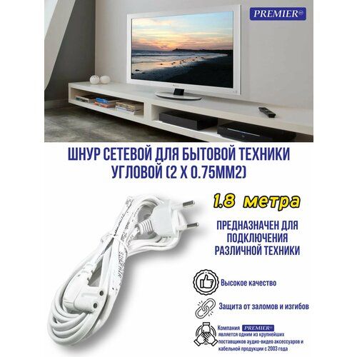 Шнур сетевой для бытовой техники "8" с угловыми разъемами и кабелем 2x0.75мм2 1.8 метра - это надежное и удобное решение для подключения различной техники к сети электропитания.