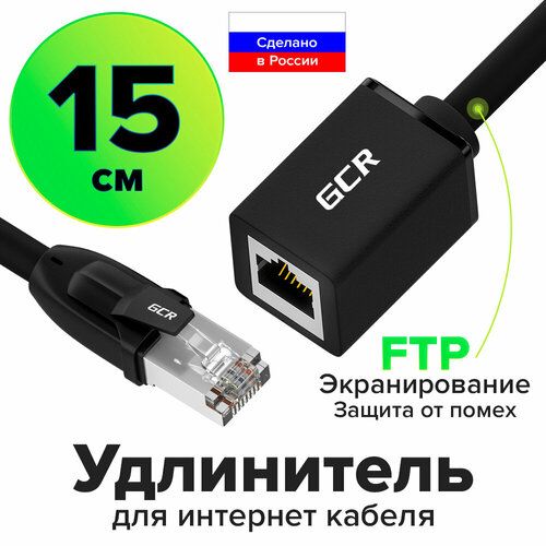 Найти - Удлинитель патч-корда FTP cat.6 10 Гбит/c RJ45M / RJ45F для подключения интернета (GCR-ELNC63) черный 0.15м