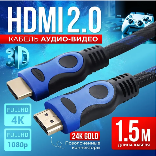 НАЙТИ ВЫГОДНЕЕ - Кабель HDMI М-М 15 метра аудио видео 1080 FullHD провод HDMI (Кабель hdmi 1.4 цифровой) черно-синий