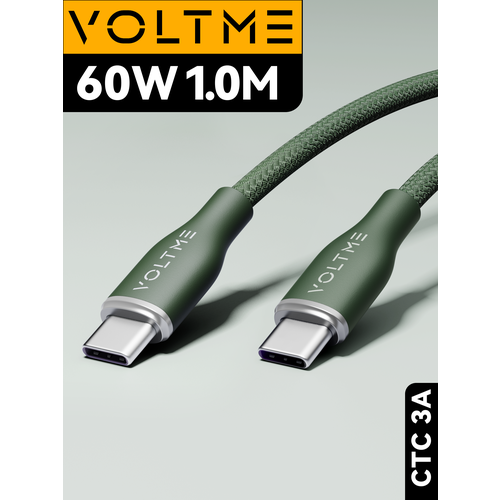 Кабель для мобильных устройств VOLTME PowerLink Rugg CTC 1.0M/3.3ft (3A) с разъемами USB Type-C to Type C премиум класса. Идеальное решение для быстрой и надежной зарядки вашего смартфона IPhone (айфон), IPad (айпад), AirPods, MacBook (макбук) и др. Поддерживает передачу данных, видео, фото, музыки и др. на компьютер или ноутбук, ПК Windows или Mac.