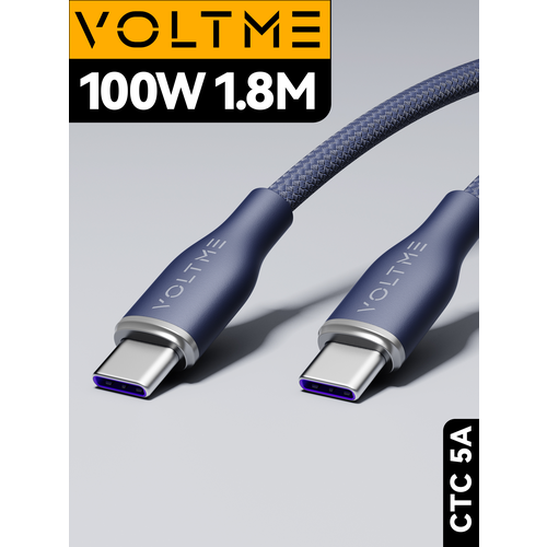 Кабель для мобильных устройств VOLTME PowerLink Rugg CTC 1.8M/6.0ft (5A) с разъемами USB Type-C to Type C премиум класса. Идеальное решение для быстрой и надежной зарядки ноутбуков, ультрабуков, игровых приставок и смартфонов IPhone (айфон), IPad (айпад), AirPods, MacBook (макбук) и др. Поддерживает передачу данных, видео, фото, музыки и др. на компьютер или ноутбук, ПК Windows или Mac.