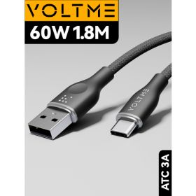 НАЙТИ ВЫГОДНЕЕ - Кабель 1.8м 3A 60W Voltme PowerLink Rugg ATC USB - Type-C, провод для быстрой зарядки телефона Samsung, Iphone, зарядный шнур черный Online Box