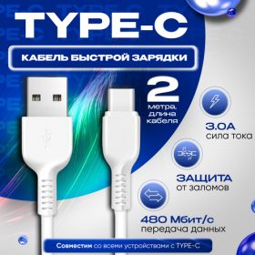 - Кабель для зарядки мобильного устройства USB - TYPE-C 2 метра, упаковка