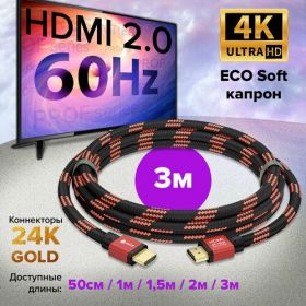Найти - HDMI видео кабель 3 метра GCR Ultra HD 4K 3D 18 Гбит/с черно-красный 24K GOLD для приставки