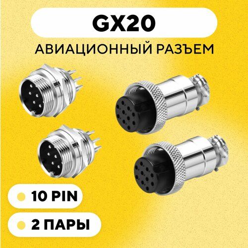 Найти - Авиационный разъем GX20 штекер + гнездо с гайкой для монтажа на корпус (10 pin, 2 пары)