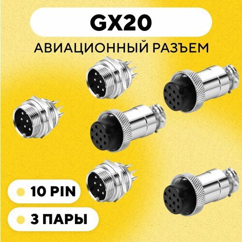 Найти - Авиационный разъем GX20 штекер + гнездо с гайкой для монтажа на корпус (10 pin, 3 пары)