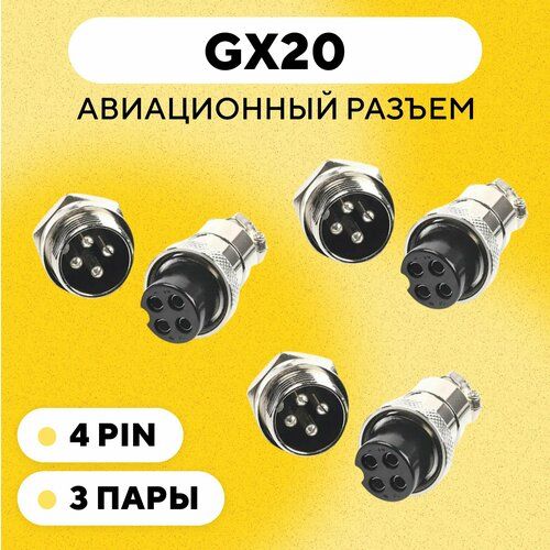 Найти - Авиационный разъем GX20 штекер + гнездо с гайкой для монтажа на корпус (4 pin, 3 пары)