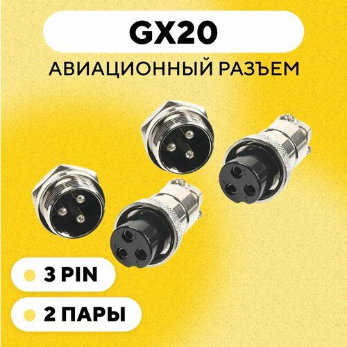 НАЙТИ ВЫГОДНЕЕ - Авиационный разъем GX20 штекер + гнездо с гайкой для монтажа на корпус (3 pin, 2 пары)