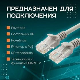 Интернет кабель - патч корд 1м, 1000 Мбит/сек - это надежное и высококачественное решение для организации стабильного интернет-соединения. Благодаря длине 1 метр, кабель обеспечивает достаточно свободы при подключении устройств. lan кабель нашей фирмы обладает скоростью передачи данных до 1000 Мбит/с, что позволяет быстро загружать и скачивать файлы, смотреть видео в высоком качестве и играть онлайн без задержек и прерываний. Кабель предназначен для использования в домашних условиях, офисах или других местах, где требуется стабильное, высокоскоростное и качественное интернет-соединение. Кабель для интернета обладает высокой надежностью и долговечностью, что позволяет избежать проблем с подключением и обеспечить стабильную работу сети на длительный срок. Патч корд имеет практичный дизайн и удобные разъемы, которые обеспечивают простое и быстрое подключение к сети. Он совместим со всеми устройствами, поддерживающими стандарт Ethernet, что делает его универсальным и удобным в использовании.