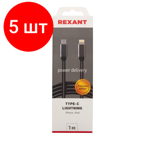 Найти - Комплект 5 штук, Кабель USB Type-C - Lightning, М/М, PD, 1 м, Rexant, графит, 18-7054