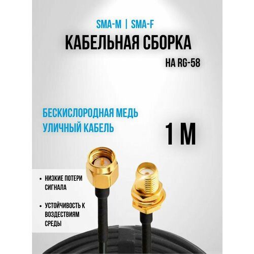 Кабельная сборка RG-58 с разъемами SMA-male - SMA-female, длина 1 метр, предназначена для подключения внешних антенн, также данный кабель может использоваться как удлинитель SMA-мама SMA-папа.