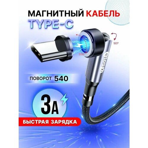 Магнитный кабель для быстрой зарядки Type C с вращением на 540°, обеспечивает надежное и быстрое подключение вашего устройства к источнику питания.
