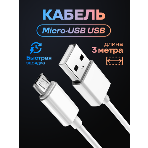 Найти - Кабель Micro USB-USB 3м, быстрая зарядка провод для iPhone, Samsung, Xiaomi, наушников и передача данных с ноутбуков