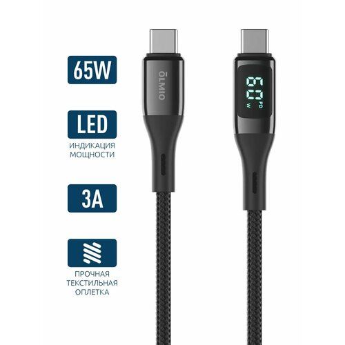 НАЙТИ ВЫГОДНЕЕ - Кабель OLMIO Geek с LCD-дисплеем, 3A/60W, Type-C – Type-C, черный