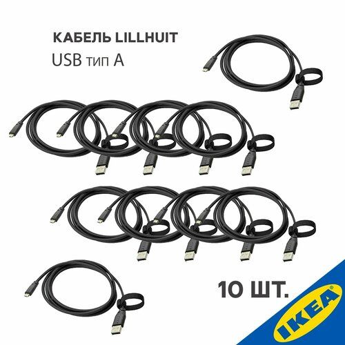 Комплект 10шт. LILLHULT лилльхульт кабель USB тип А – micro-USB 1.5 м темно серый - это надежный и удобный комплект кабелей, предназначенных для подключения различных устройств к источнику питания или передачи данных. Каждый кабель из этого комплекта имеет длину 1.5 метра и выполнен в стильном темно-сером цвете.