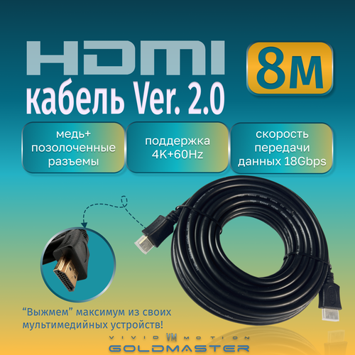 НАЙТИ ВЫГОДНЕЕ - Кабель GoldMaster HDMI 8м Шнур HDMI - HDMI - 8м Ver 2.0, GoldMaster с позолоченными коннекторами