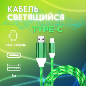 Найти - Светящийся USB Type-C кабель гирлянда для быстрой зарядки телефона зеленый