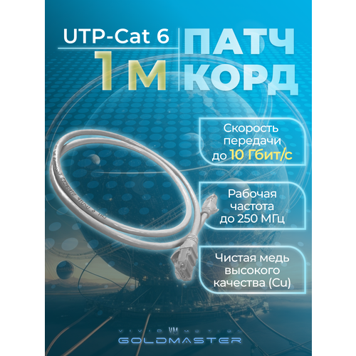 НАЙТИ ВЫГОДНЕЕ - Патч-корд GoldMaster1м, UTP cat6, медь, RJ45, Ethernet, LAN, серый, NA102-1m, контакты Blade позолота 03MU