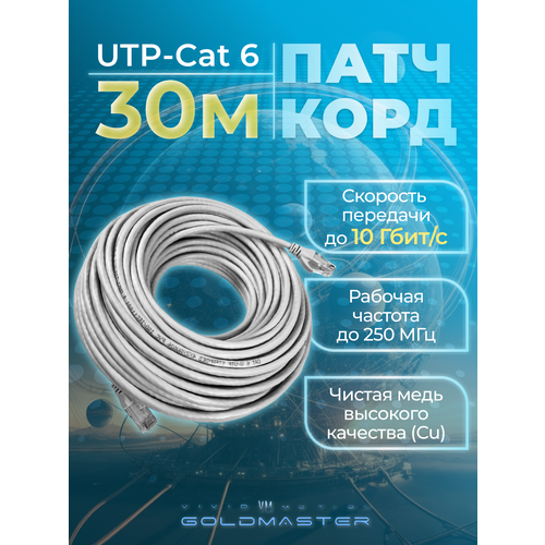 НАЙТИ ВЫГОДНЕЕ - Патч-корд GoldMaster 30м, UTP cat6, медь, RJ45, Ethernet, LAN, серый, NA102-30m, контакты Blade позолота 03MU