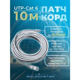 НАЙТИ ВЫГОДНЕЕ - Патч-корд GoldMaster 10м, UTP cat6, медь, RJ45, Ethernet, LAN, серый, NA102-10m, контакты Blade позолота 03MU
