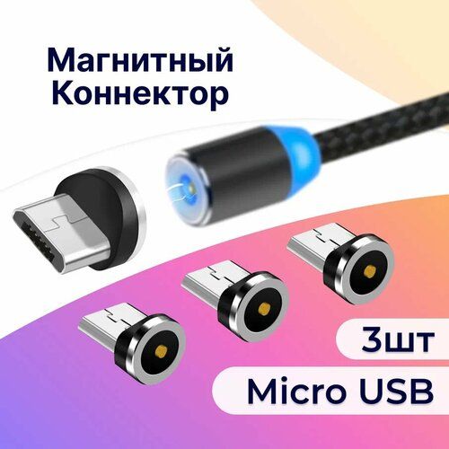 НАЙТИ ВЫГОДНЕЕ - Комплект 3 шт. Магнитный коннектор Micro USB для кабеля / Наконечник Микро ЮСБ для зарядки / Насадка на провод