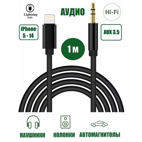 Аудио кабель aux Lightning - mini jack 3.5 предназначен для подключения смартфонов iPhone 5 -14 поколений, планшетов iPad, плееров iPod с разъемом Lightning к аудиосистемам, наушникам, колонкам и другим аудиоустройствам с разъемом 3.5 мм.