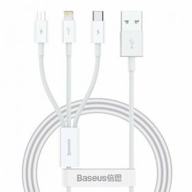 Найти - Кабель для айфон USB BASEUS Superior Series 3 в 1 USB - Type-C + Lightning + MicroUSB, 3.5A, 17.5W, 50 см, белый
