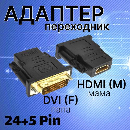 Переходник конвертер позволяет передавать цифровой и аналоговый сигнал между HDMI DVI устройствами. Адаптер DVI-I папа - HDMI мама, редкий переходник под dvi со штырьками.