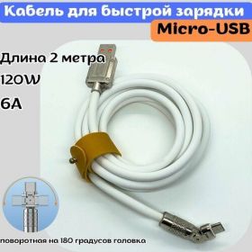 Кабель для зарядки смартфонов и гаджетов с интерфейсом зарядки micro-usb. Поддерживает протокол быстрой зарядки FCP/QC, что позволяет экономить время на зарядку смартфона. Оплетка из soft touch покрытия, приятная на ощупь. Поворотная головка позволяет не перегибаться кабелю, что повлияет на срок его службы.