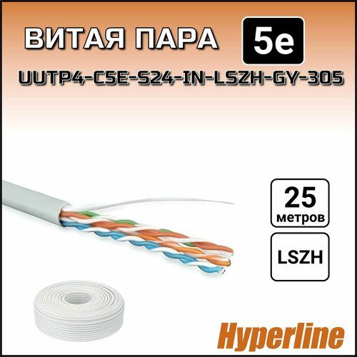 НАЙТИ ВЫГОДНЕЕ - Кабель витая пара 25 метров Hyperline (UUTP4-C5E-S24-IN-LSZH-GY-305) UTP 4 пары внутренний