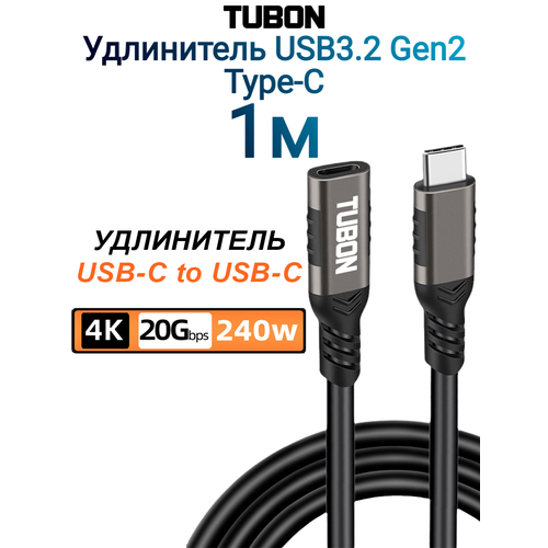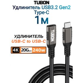 НАЙТИ ВЫГОДНЕЕ - Кабель TUBON Удлинитель Type-C USBC USB3.2 Gen2 20Gb 240w 4K/60Hz UU02 1м