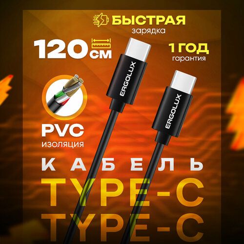Кабель Type C-Type C ERGOLUX ELX-CDC06-C02 - это высококачественный и надежный аксессуар для зарядки и передачи данных.
