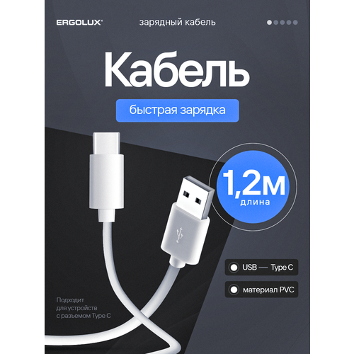 НАЙТИ ВЫГОДНЕЕ - Кабель для зарядки ERGOLUX ELX-CDC02-C01, USB-Type C, длина 1.2 м, белый