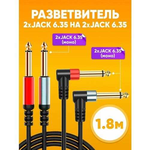 НАЙТИ ВЫГОДНЕЕ - Кабель разветвитель 2х Jack 6.35мм - 2х Jack 6.35мм, 1.8м / Удлинитель 2х джек 6.35 мм на 2х джек 6.35 мм, черный / Аудиоадаптер аудиокабель шнур AUX, угловой штекер