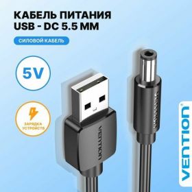 НАЙТИ ВЫГОДНЕЕ - Кабель питания USB AM/DC-jack 5.5мм (M), длина 1 м Vention цвет черный , для роутера, сплиттера, камеры CEYBG