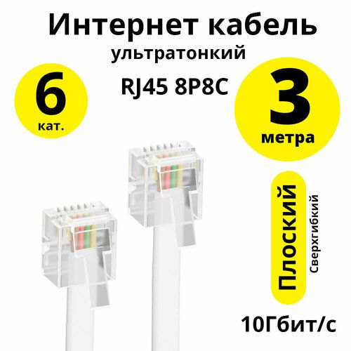НАЙТИ ВЫГОДНЕЕ - Патч-корд для интернета CAT6 10 Гбит/с RJ45 LAN плоский для ПК PS4 Xbox One Smart TV (ELS-LNC6) белый 3.0м