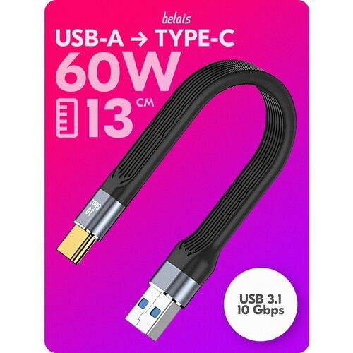 Найти - Кабель короткий сверхскоростной USB A — TYPE-C «belais» (10 Gbps, 60W, USB 3.1, 13 см, чёрный) #22637