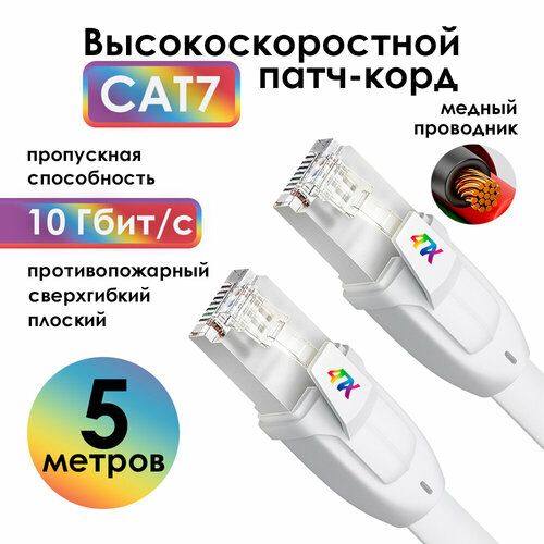 НАЙТИ ВЫГОДНЕЕ - Провод для интернета FTP CAT7 10 Гбит/с плоский для XBOX PS5 PS4 модема (4PH-L305) белый 5.0м