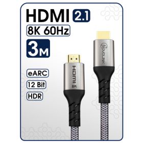 Найти - Кабель HDMI 2.1 8К 60 Гц / 4К 120 Гц, длина 3 метра, тканевая оплетка, поддержка HDR, ARC