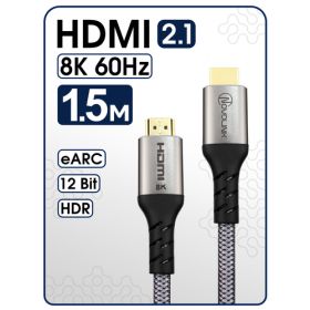 НАЙТИ ВЫГОДНЕЕ - Кабель HDMI 2.1 8К 60 Гц / 4К 120 Гц, длина 1,5 метра, тканевая оплетка, поддержка HDR, ARC