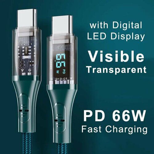 Найти - Кабель Type-C-Type-C для быстрой зарядки PD 66 W, 6 Ампер, 1.2 метра, дисплей с измерителем тока, зарядка для Huawei, Xiaomi, Samsung (Зеленый)