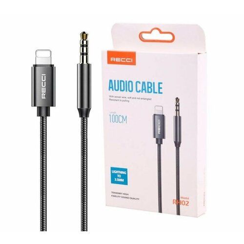 НАЙТИ ВЫГОДНЕЕ - Аудиокабель AUX Lightning to 3,5mm Recci RH02 1 метр - Черный