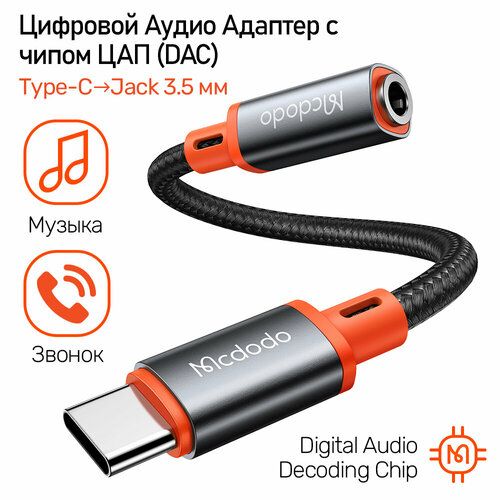 НАЙТИ ВЫГОДНЕЕ - Цифровой Аудио Переходник с чипом DAC, Type-C (п) на AUX 3.5 мм (м) c поддержкой звонка, HD Digital Audio Cable, Mcdodo CA-7561
