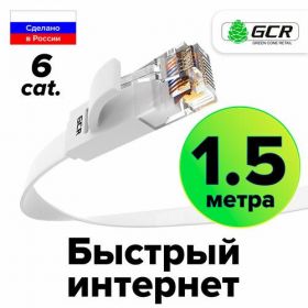 Найти - Патч-корд PROF плоский UTP cat.6 10 Гбит/с RJ45 LAN для интернета контакты 24K GOLD (GCR-LNC62) белый 1.5м