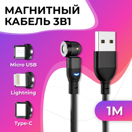НАЙТИ ВЫГОДНЕЕ - Магнитный поворотный кабель 3 в 1 Micro, Type-C, Lightning / Провод с коннекторами на iPhone, Samsung, Android / 1 метра