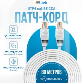 Найти - Сетевой кабель патч-корд витая пара UTP4 cat.5e CCA 80 метров UTP-CCA80P