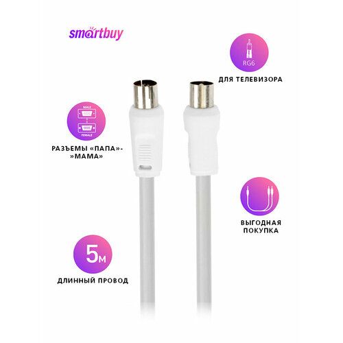 Найти - Антенный кабель SmartBuy, разъемы F-М-типа, длина 5 м, круглый, белый
