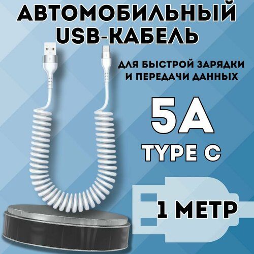 НАЙТИ ВЫГОДНЕЕ - Автомобильный витой кабель USB - TYPE C. Зарядка для телефона в машину 1м. Белый.
